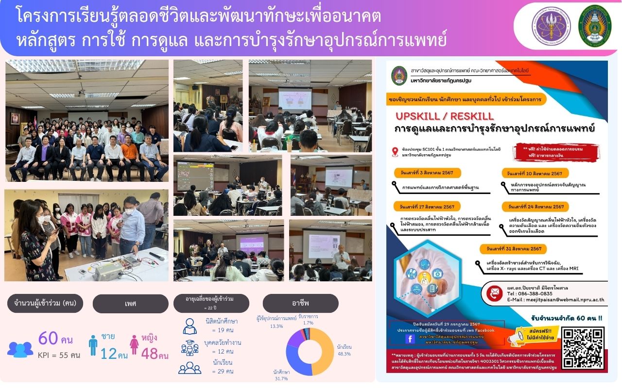 จากสถานการณ์ในปัจจุบัน สังคมไทยมุ่งสู่สังคมผู้สูงอายุมากขึ้นทำให้บุคลากรทางการแพทย์ในทุก ๆ ด้านเกิดความขาดแคลน ทั้งบุคลากรด้านการรักษา การดูแลผู้ป่วย และการดูแลเครื่องมือแพทย์ จึงจำเป็นต้องมีนโยบาย การสนับสนุน และการส่งเสริมให้มีการพัฒนาองค์ความรู้ทางด้านการแพทย์เพิ่มมากขึ้น ทั้งนี้บุคลากรในการดูแลเครื่องมือแพทย์ในปัจจุบันยังมีจำนวนไม่เพียงพอต่อการปฏิบัติหน้าที่ในโรงพยาบาล ดังนั้นการสร้างองค์ความรู้ด้านการใช้งานและการดูแลอุปกรณ์การแพทย์ให้กับผู้ที่ใช้งานและผู้ที่เกี่ยวข้อง จะช่วยทำให้ความถี่ของการชำรุดในเครื่องมือแพทย์ลดน้อยลง