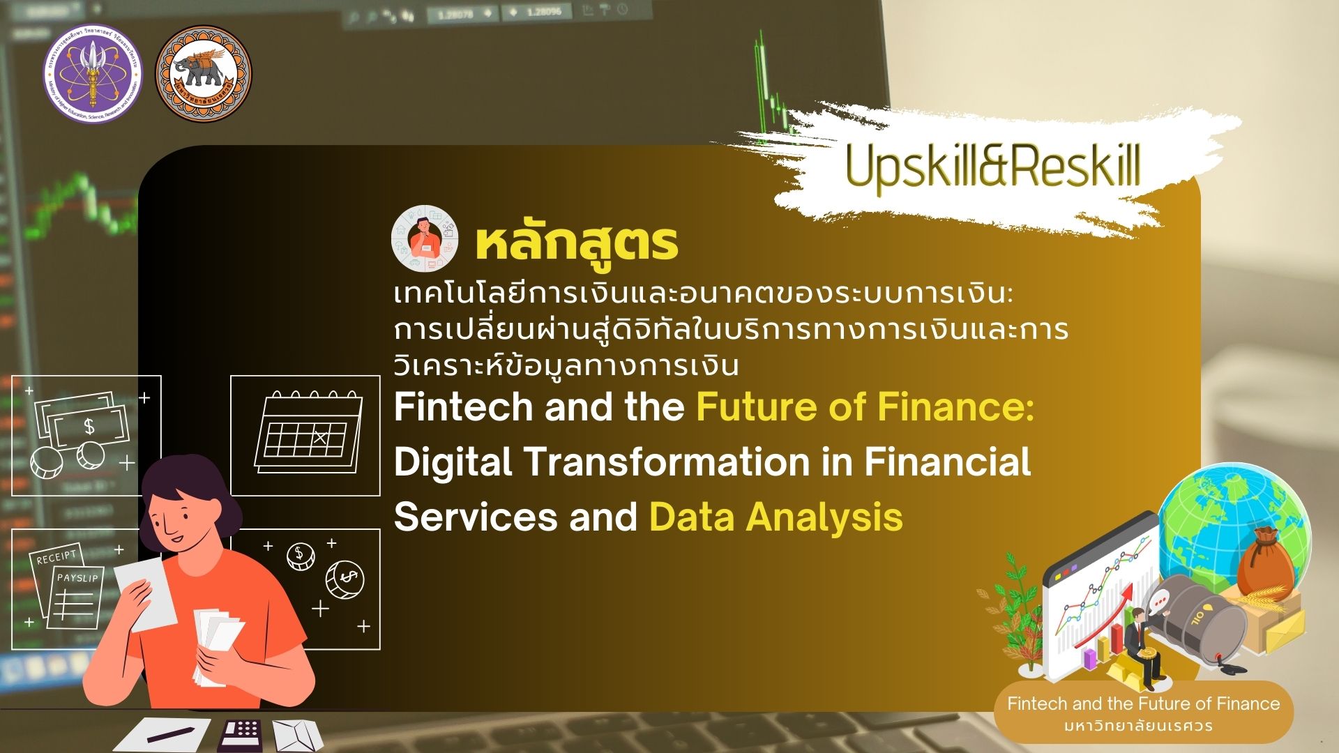 แนวคิด และหลักการทางบัญชีการเงิน การบริหารและวิเคราะห์งบการเงิน การวิเคราะห์ข้อมูลประยุกต์ใช้กับข้อมูลการเงิน การประยุกต์เทคโนโลยีทางการเงิน เทคโนโลยีบล็อกเชน เงินตราดิจิทัล