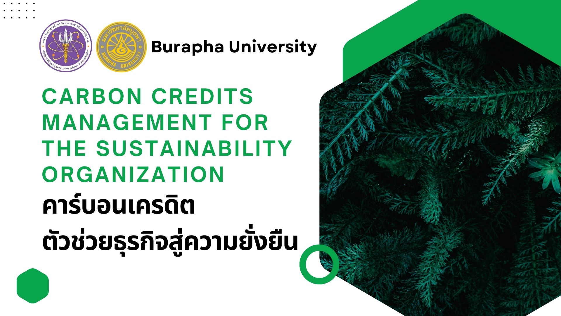 วิทยาศาตร์สิ่งแวดล้อม ความหมายและขอบเขตของวิทยาศาสตร์สิ่งแวดล้อม บทบาทของวิทยาศาสตร์และเทคโนโลยีกับการพัฒนาสิ่งแวดล้อมอย่างยั่งยืน การเปลี่ยนแปลงสภาพภูมิอากาศและภาวะโลกร้อน มลพิษพลาสติก (ไมโครพลาสติกกับมลพิษทางน้ำ) PM2.5 กับปัญหามลพิษทางอากาศ ไฟป่าและผลกระทบด้านสิ่งแวดล้อม พลังงานทดแทน วิถีเกษตรอินทรีย์ การฟื้นฟูสิ่งแวดล้อมด้วยกระบวนการทางชีวภาพ วิทยาศาสตร์สิ่งแวดล้อมกับคุณภาพชีวิต นวัตกรรมเพื่อสิ่งแวดล้อม การมีส่วนร่วมในการจัดการทรัพยากรธรรมชาติและสิ่งแวดล้อม ก๊าซเรือนกระจกและการเปลี่ยนแปลงสภาพภูมิอากาศ การบริโภคและการผลิตที่เป็นมิตรกับสิ่งแวดล้อม เป้าหมายการพัฒนาที่ยั่งยืน โมเดลเศรษฐกิจใหม่สู่การพัฒนาที่ยั่งยืน คาร์บอนเครดิต (Carbon credit) หลักการประเมินคาร์บอนฟุตพริ้นท์ของประเทศไทย การบริหารจัดการคาร์บอนเครดิต แนวทางดำเนินการคาร์บอนฟุตพริ้นท์ขององค์กร การประเมิน carbon footprint ของเครื่องใช้ไฟฟ้า แนวทางการชดเชยคาร์บอนในระดับองค์กร